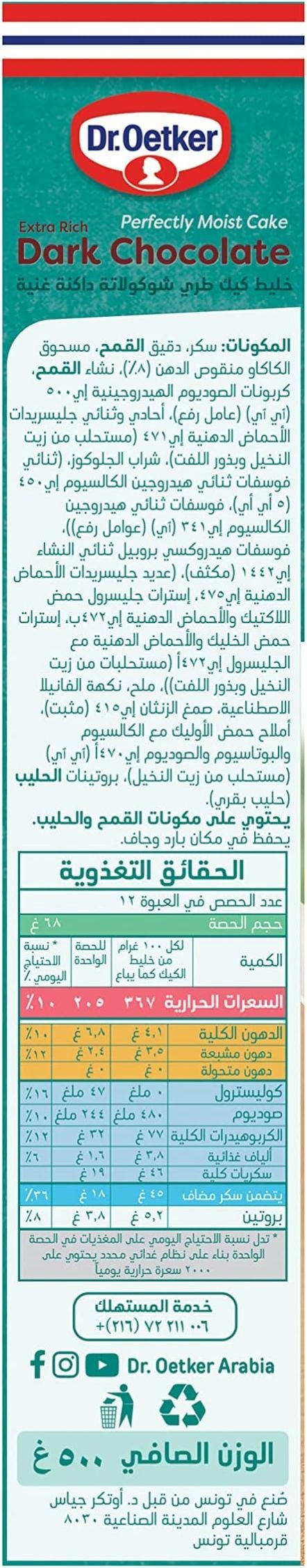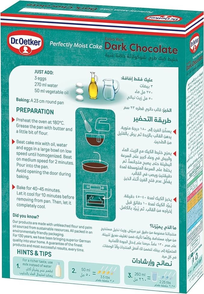Dr Oetker Moist Cake Extra Rich Dark Chocolate 500 g خليط كيك طري شوكولاتة داكنة