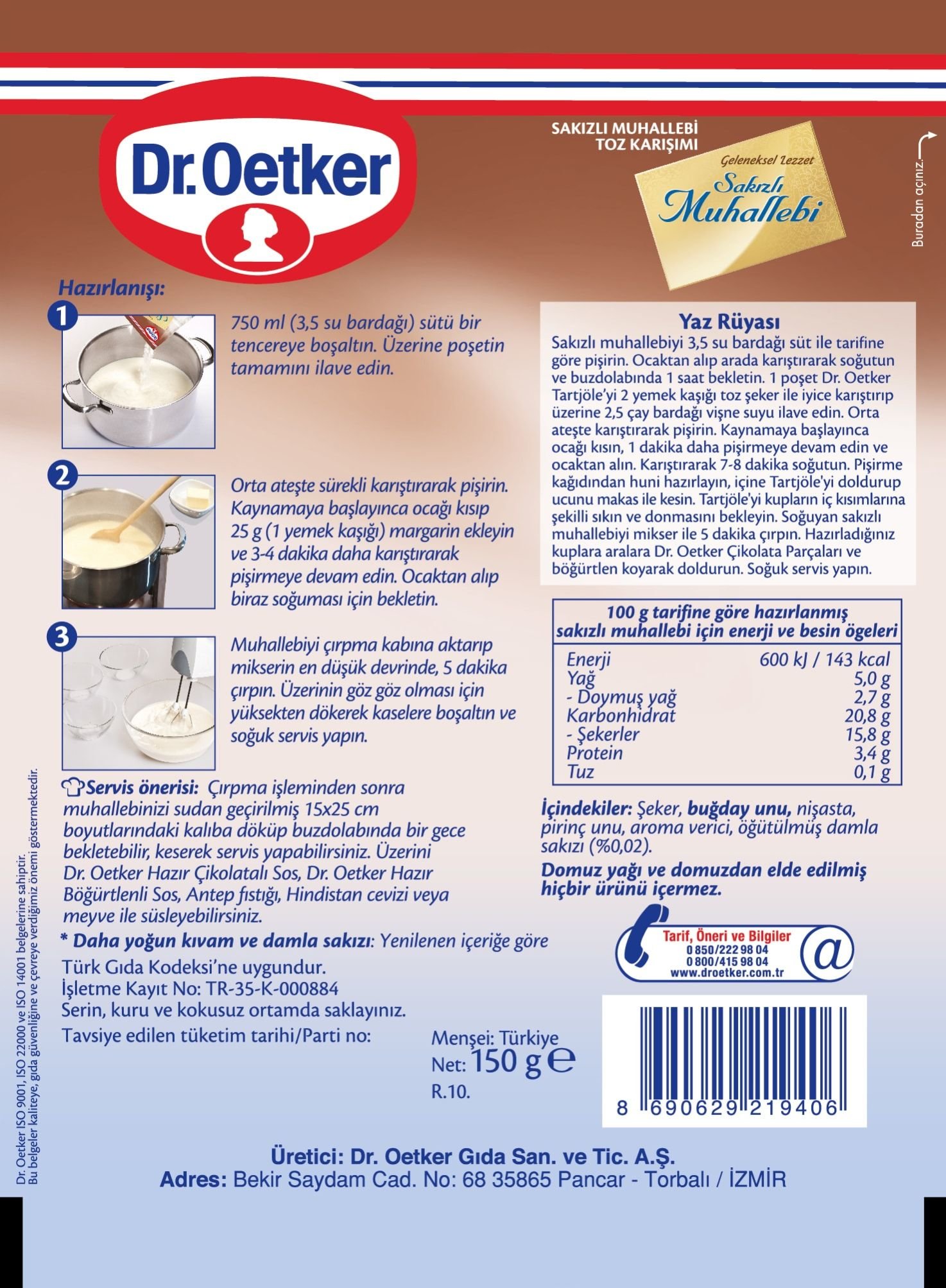 مهلبية بالصمغ المستكة يتم تحضيره بـ 750 مل من الحليب. صمغ المستكة ونكهة الصمغ من الداخل، يعطيها طعماً رائعاً وبعد طبخها، يتم خفقها بالخلاط لمدة قصيرة حتى تعطي قواماً كثيفاً مثل العلكة. يحتوي الجزء الخلفي من العبوات على تارتليت مع وصفة الصمغ المستكة. Muhallebi with Gum Mastic It is prepared with 750 ml of milk. Gum mastic and gum flavor inside, gives it a wonderful taste and after cooked, it is whipped with a mixer for a short notice in order to give an intense consistency like a gum. The backside of the packages include tartlet with gum mastic recipe.