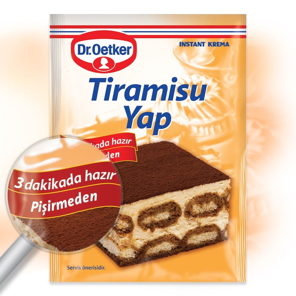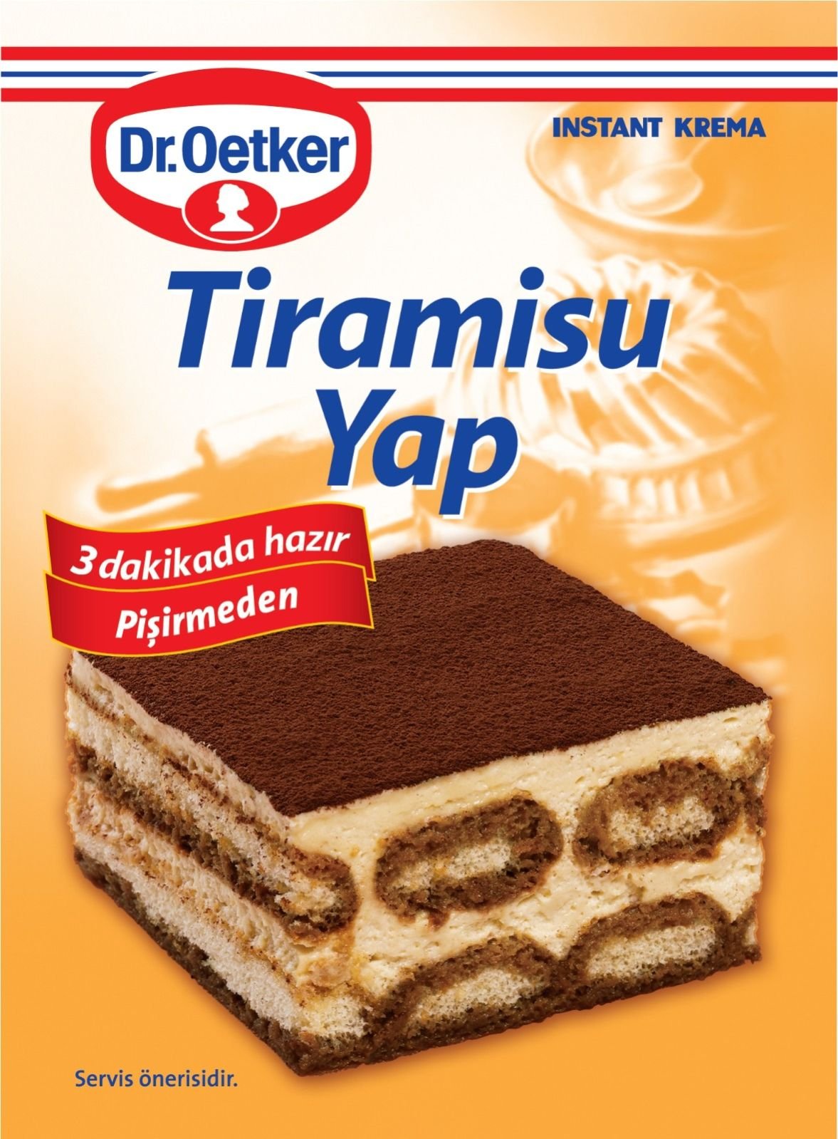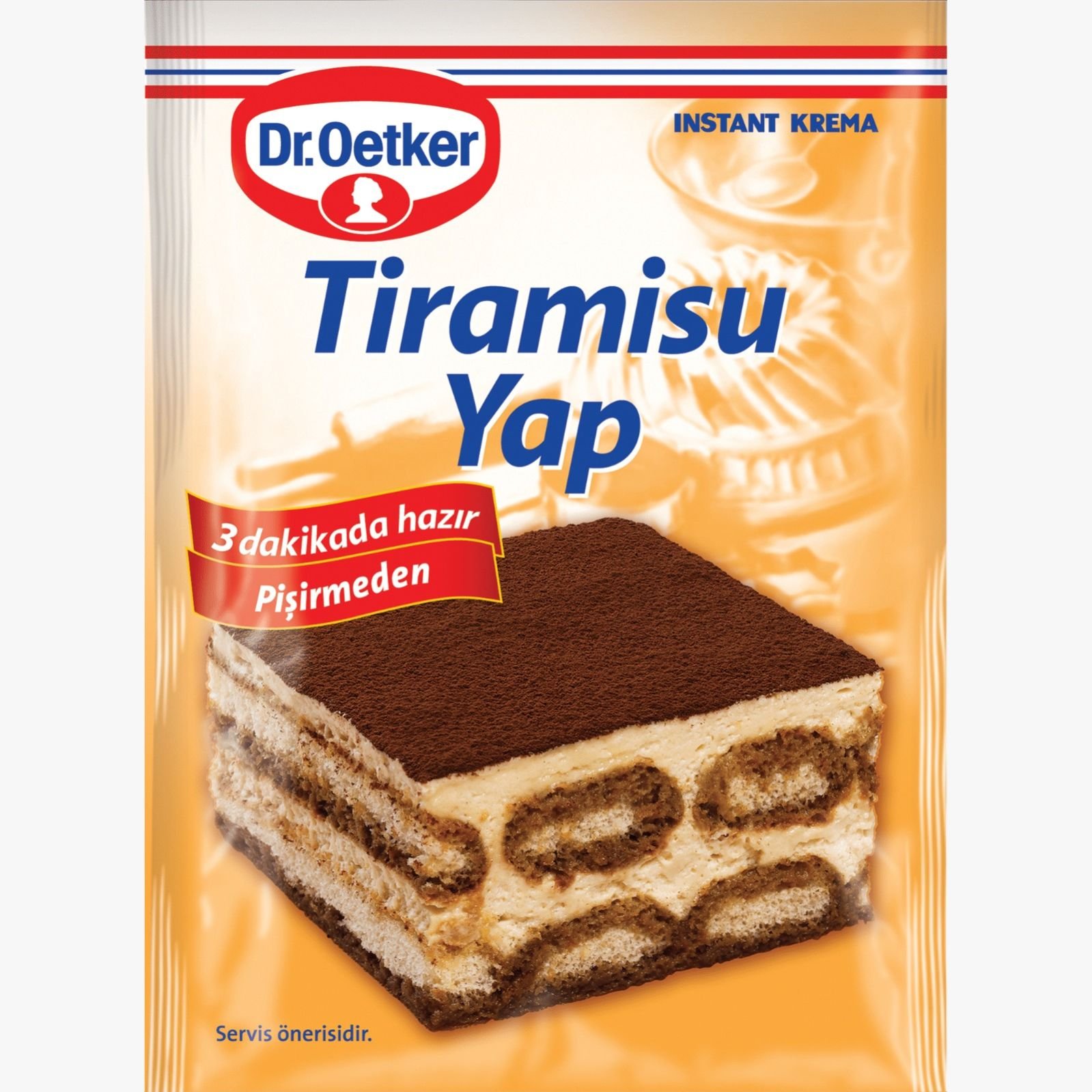 خليط كريما التيراميسو هذا المنتج الذي يحتوي على خاصية الكريمة سريعة التحضير يتم خفقه مع 2.5 كوب من الحليب البارد بدلاً من طهيه لمدة 3 دقائق. ويمكن أيضًا تحضيرها مع كوبين من الحليب و200 جرام من الجبن الطري حسب الاختيار Tiramisu Yap This product that includes instant cream feature is whipped with 2,5 glasses of cold milk instead of cooking by 3 minutes. It could be also prepared together with 2 glasses of milk and 200 g mild cream cheese and depending on the choice
